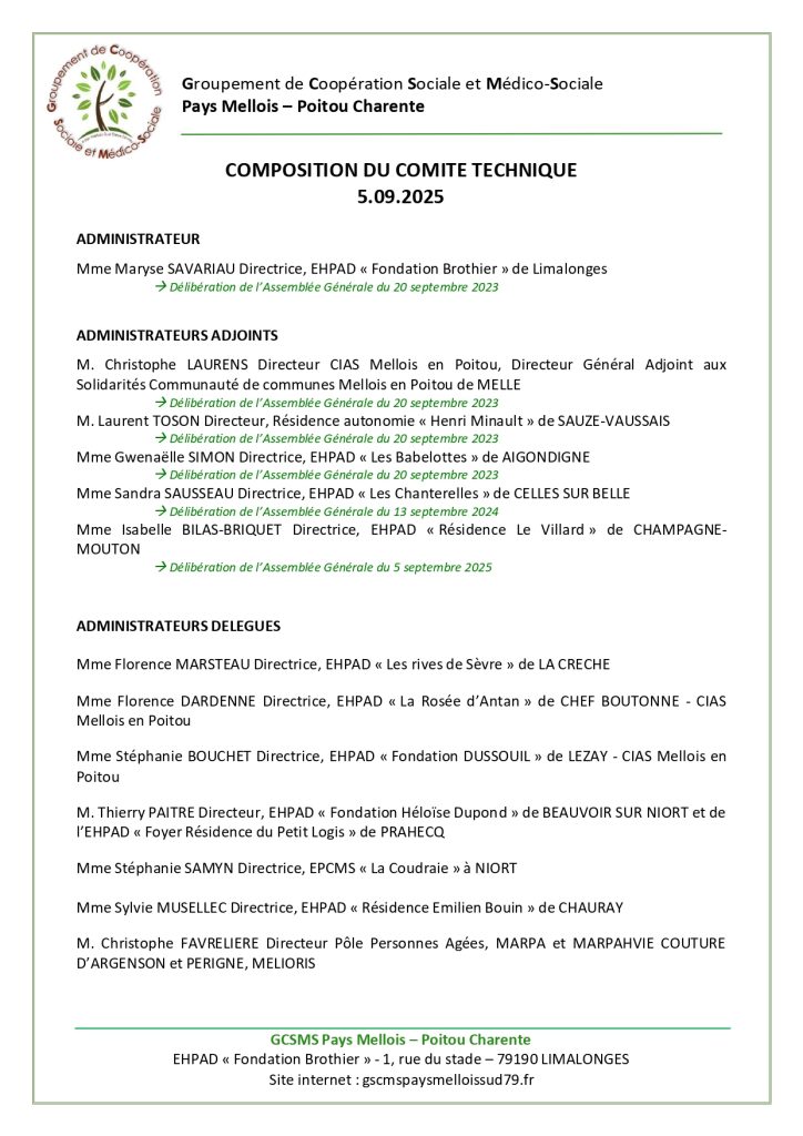 Le Comité Technique est composé des directeurs membres de l’Assemblée générale. Il assure les missions définies par le Règlement intérieur.